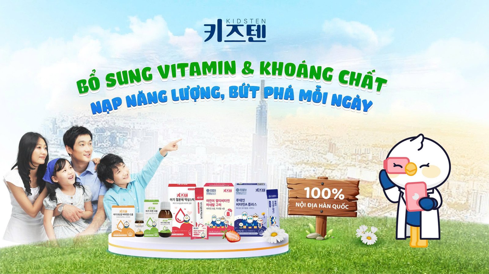"Trước giờ mình khá kỹ tính khi chọn thực phẩm bổ sung cho con. Mình tìm hiểu thì mới biết các sản phẩm của Kidsten được nghiên cứu bởi Viện nghiên cứu thuộc Đại học Yonsei – top 3 trường đại học danh giá nhất Hàn Quốc. Thật sự yên tâm hẳn!